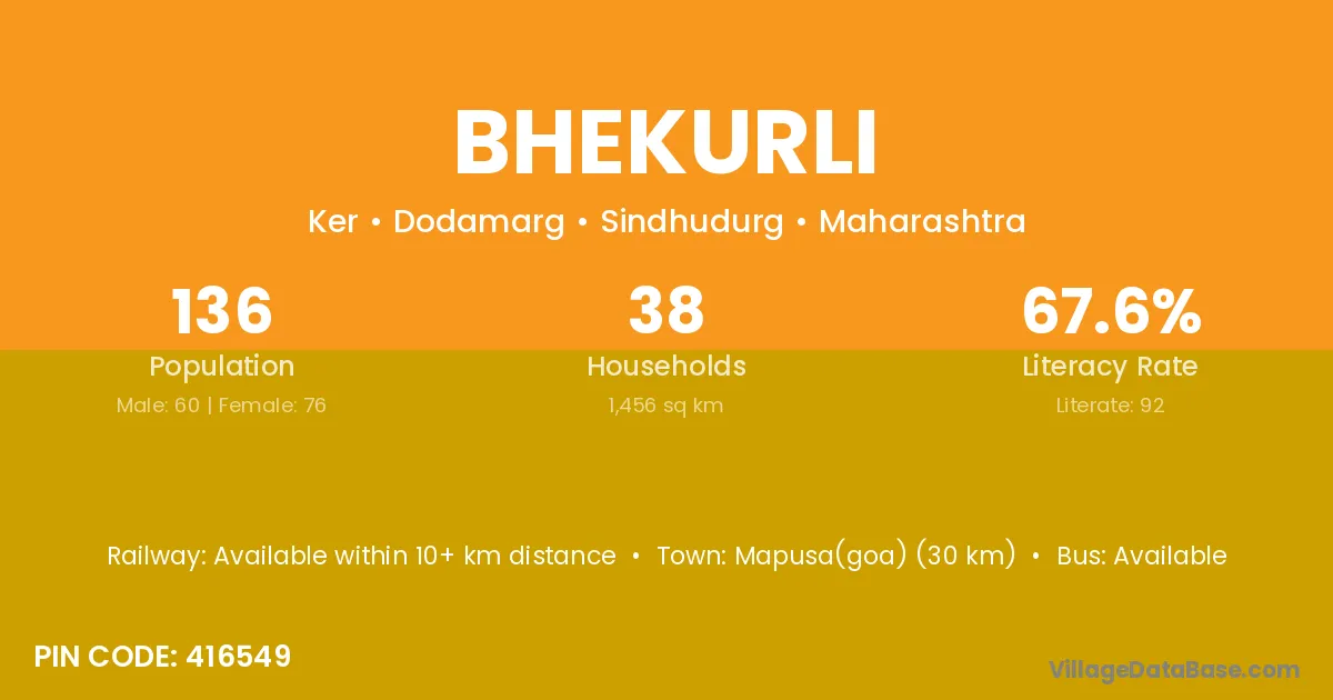 Bhekurli village has a total population of 136 people, of which 60 are males and 76 are females.