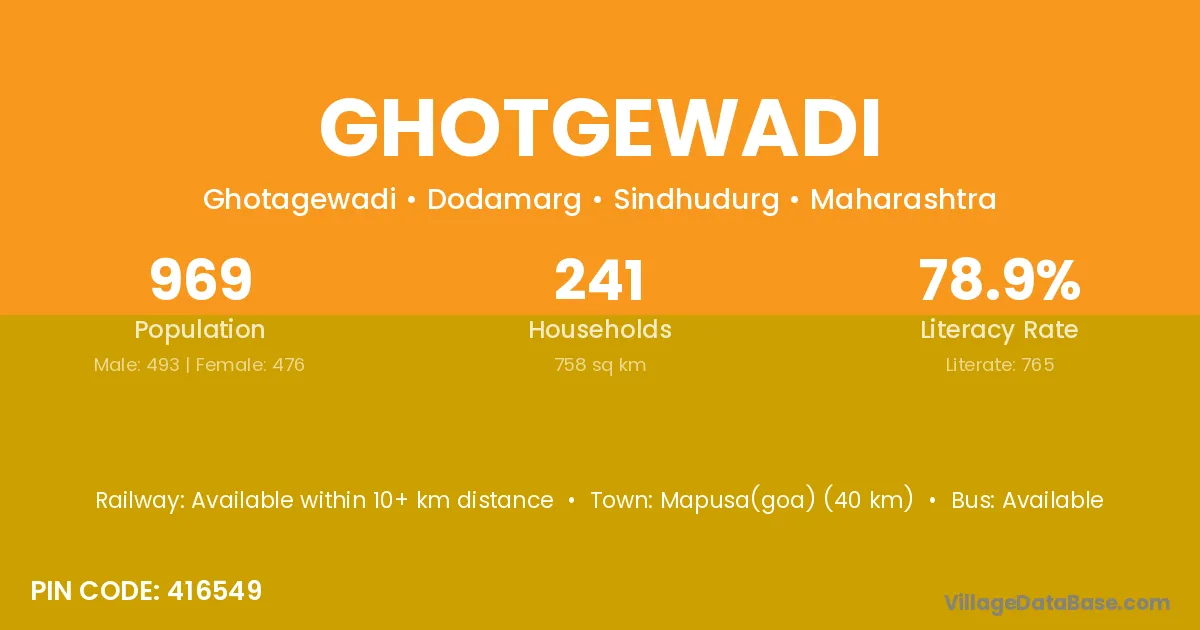 Ghotgewadi village has a total population of 969 people, of which 493 are males and 476 are females.