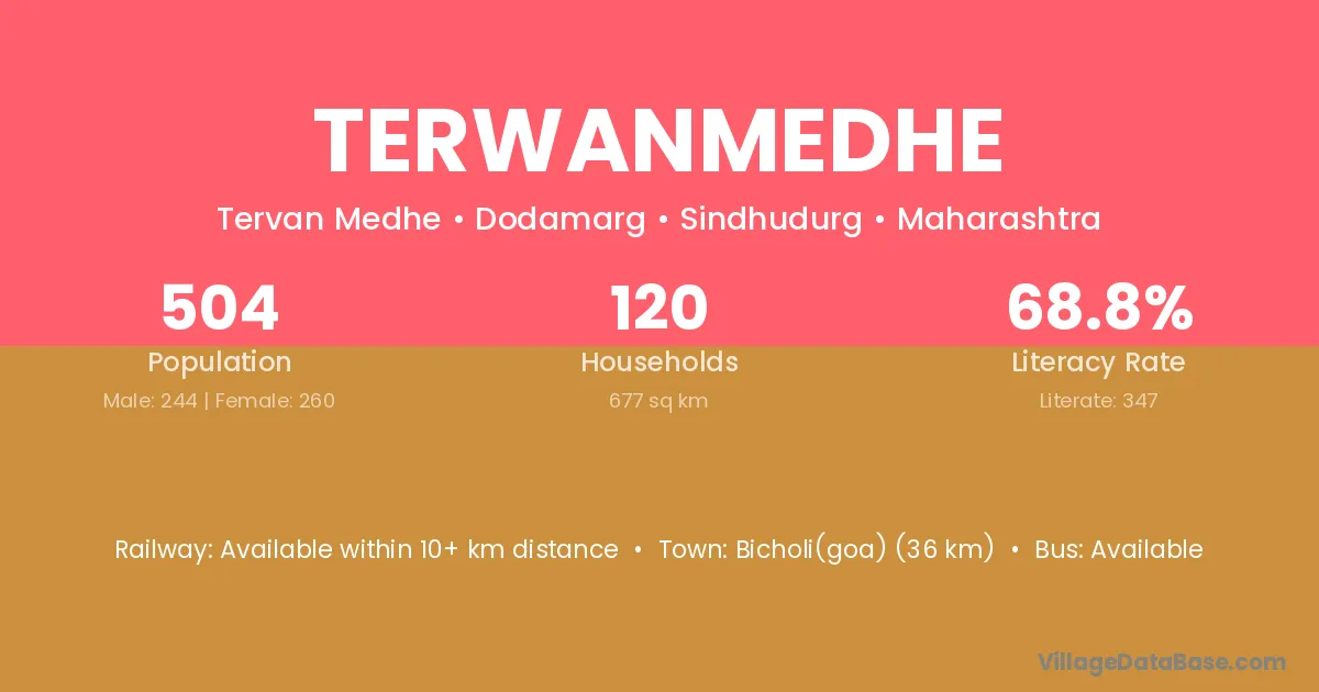 Terwanmedhe village has a total population of 504 people, of which 244 are males and 260 are females.