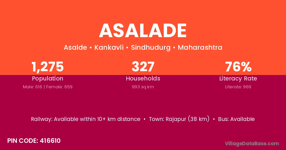 Rajapur (38 km) is the nearest town to Asalade village for major economic activities and is located approximately 38 km away.