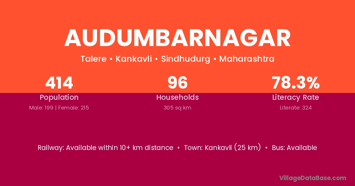 Kankavli (25 km) is the nearest town to Audumbarnagar village for major economic activities and is located approximately 25 km away.