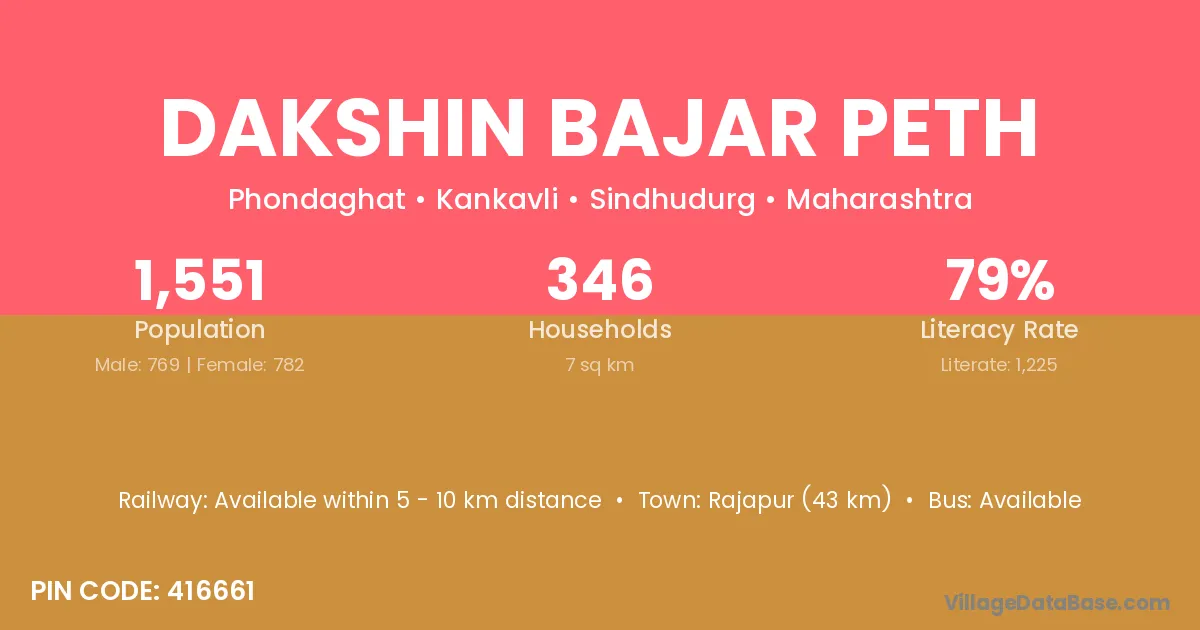 Rajapur (43 km) is the nearest town to Dakshin Bajar Peth village for major economic activities and is located approximately 43 km away.
