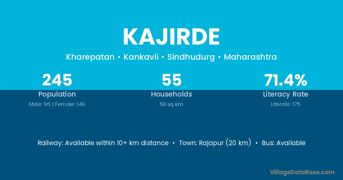 Rajapur (20 km) is the nearest town to Kajirde village for major economic activities and is located approximately 20 km away.