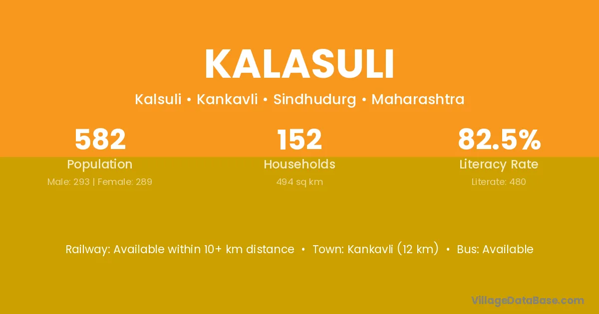 Kankavli (12 km) is the nearest town to Kalasuli village for major economic activities and is located approximately 12 km away.