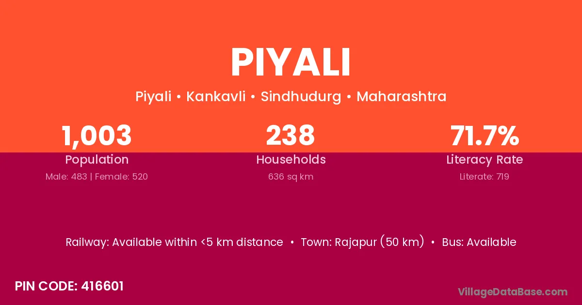 Piyali village has a total population of 1,003 people, of which 483 are males and 520 are females.