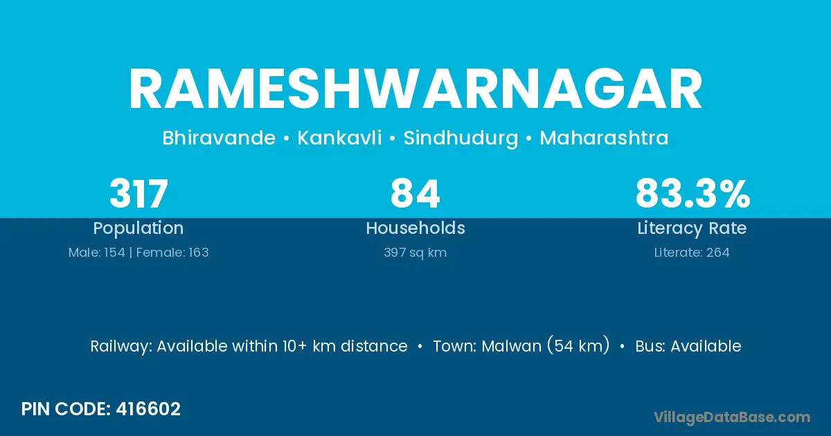 Malwan (54 km) is the nearest town to Rameshwarnagar village for major economic activities and is located approximately 54 km away.