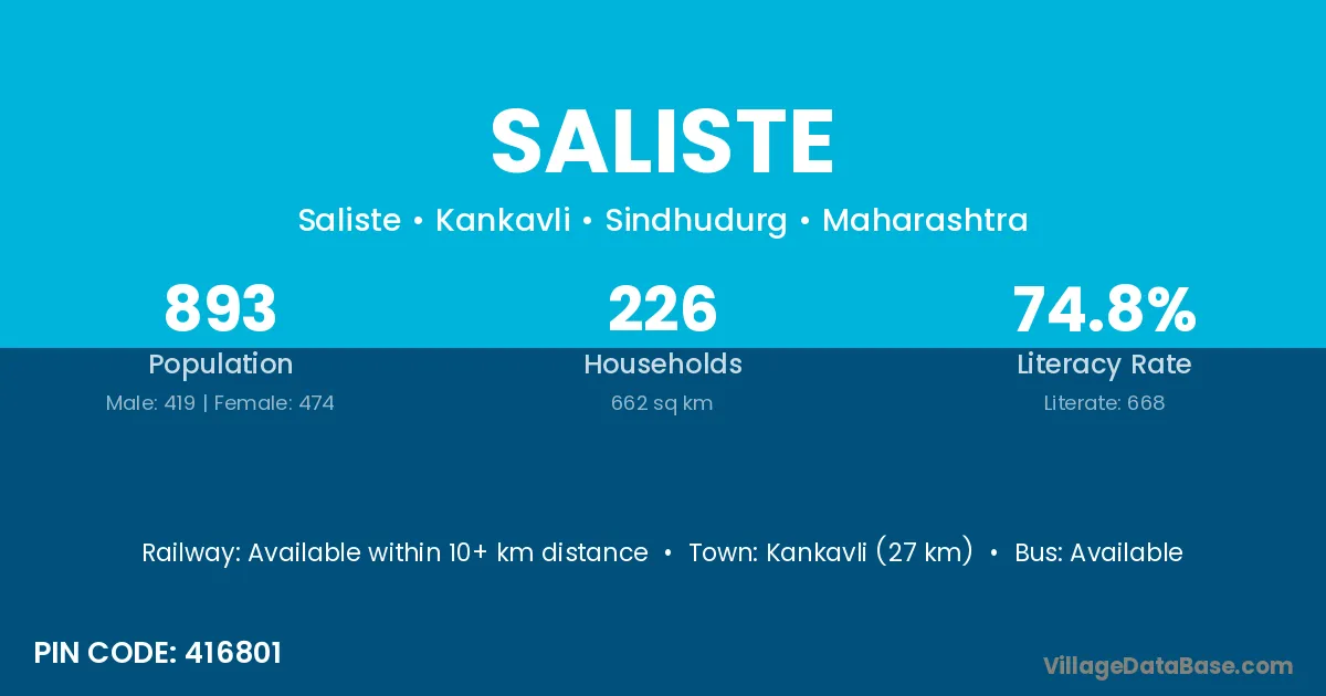 Kankavli (27 km) is the nearest town to Saliste village for major economic activities and is located approximately 27 km away.