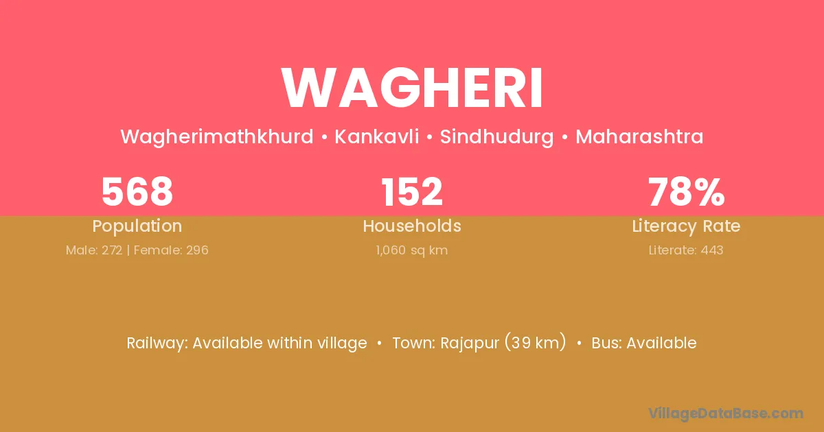 Rajapur (39 km) is the nearest town to Wagheri village for major economic activities and is located approximately 39 km away.