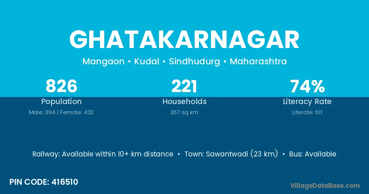 Sawantwadi (23 km) is the nearest town to Ghatakarnagar village for major economic activities and is located approximately 23 km away.