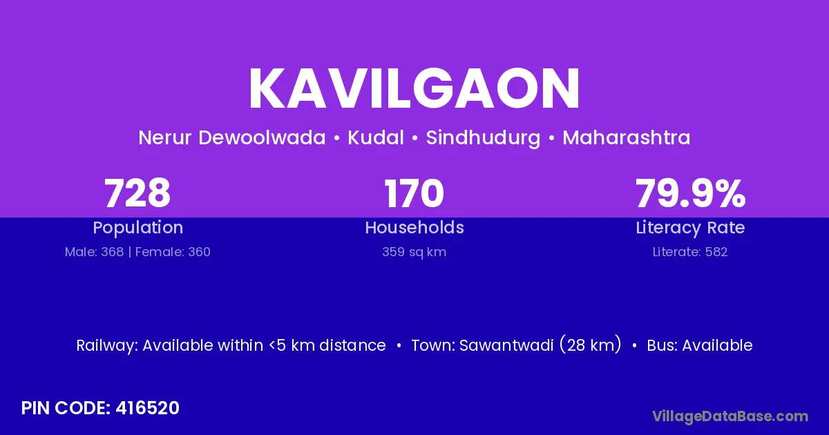 According to Census 2011 information, the village code of Kavilgaon village is 416520.