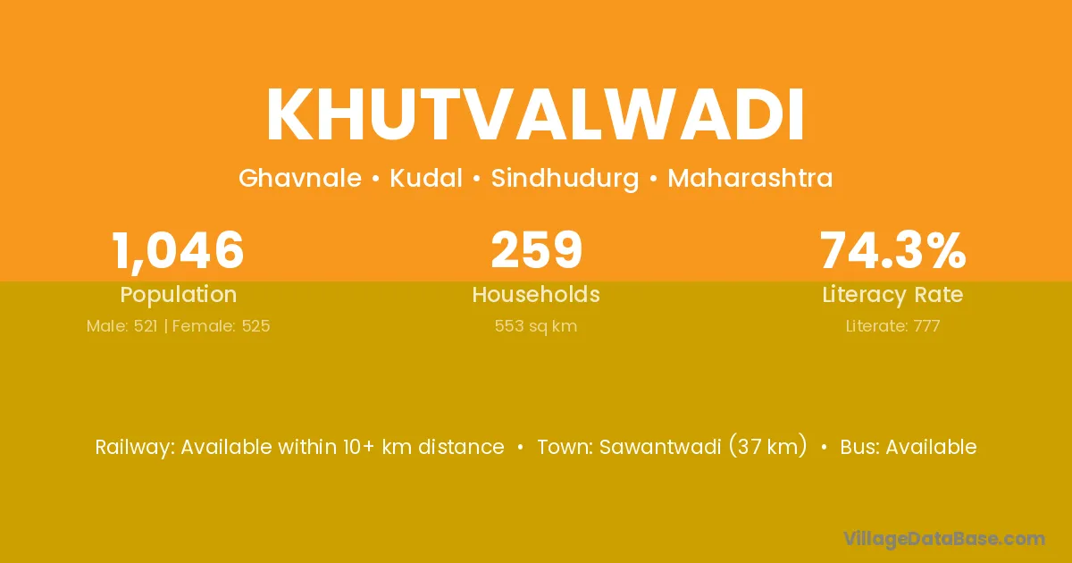 Sawantwadi (37 km) is the nearest town to Khutvalwadi village for major economic activities and is located approximately 37 km away.