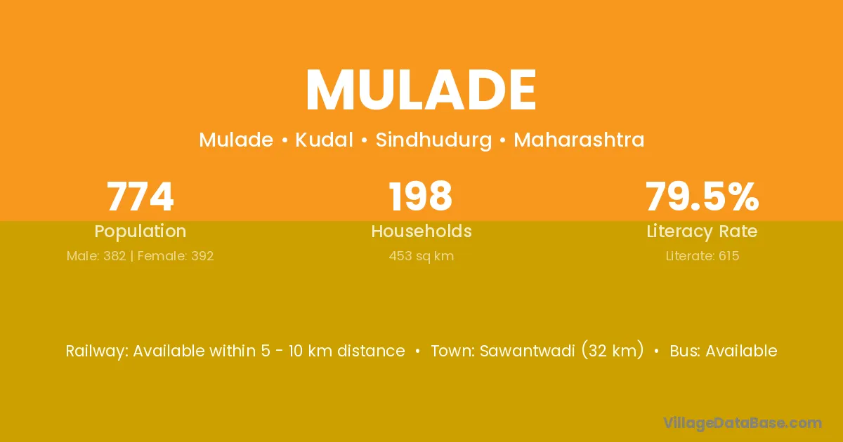 Sawantwadi (32 km) is the nearest town to Mulade village for major economic activities and is located approximately 32 km away.