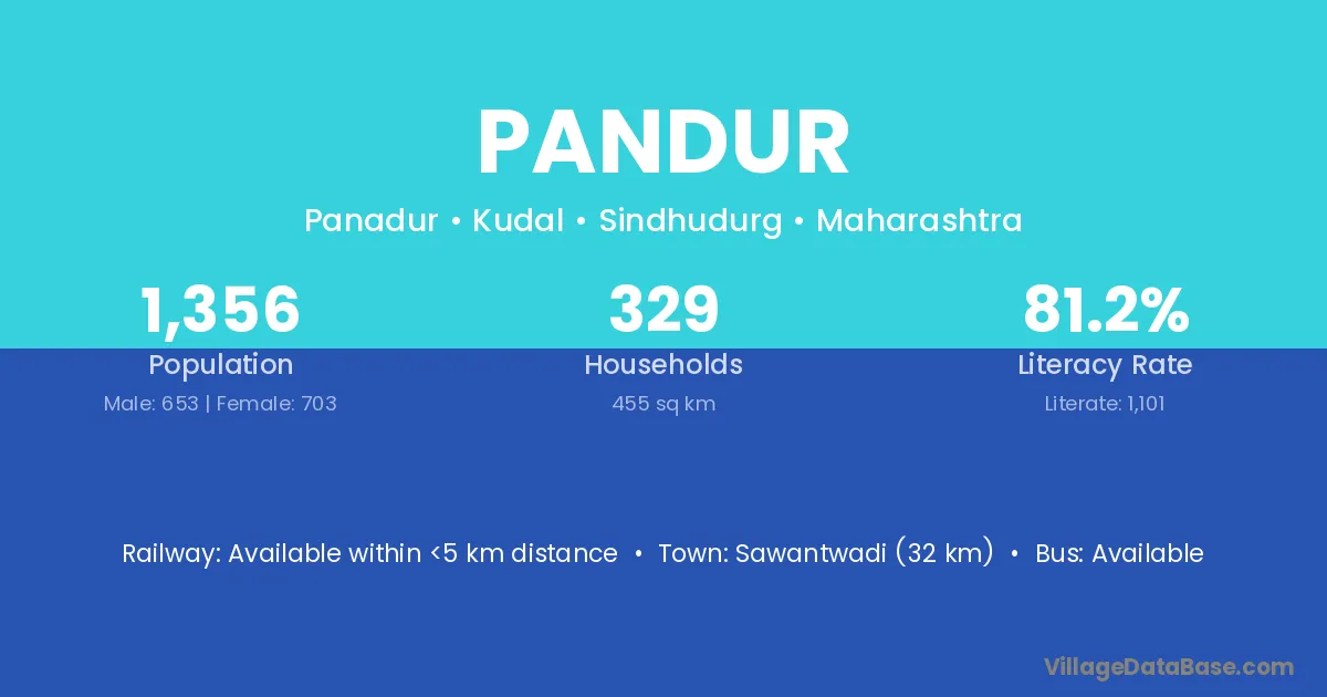 Sawantwadi (32 km) is the nearest town to Pandur village for major economic activities and is located approximately 32 km away.
