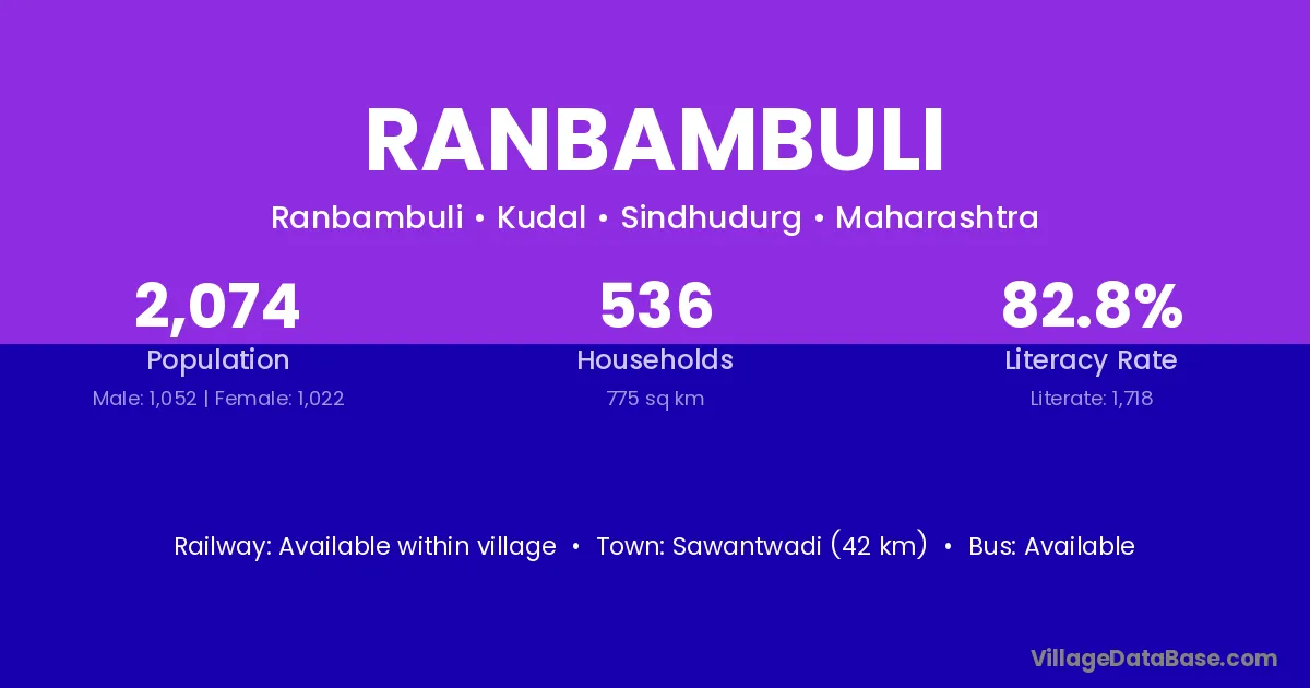 Sawantwadi (42 km) is the nearest town to Ranbambuli village for major economic activities and is located approximately 42 km away.