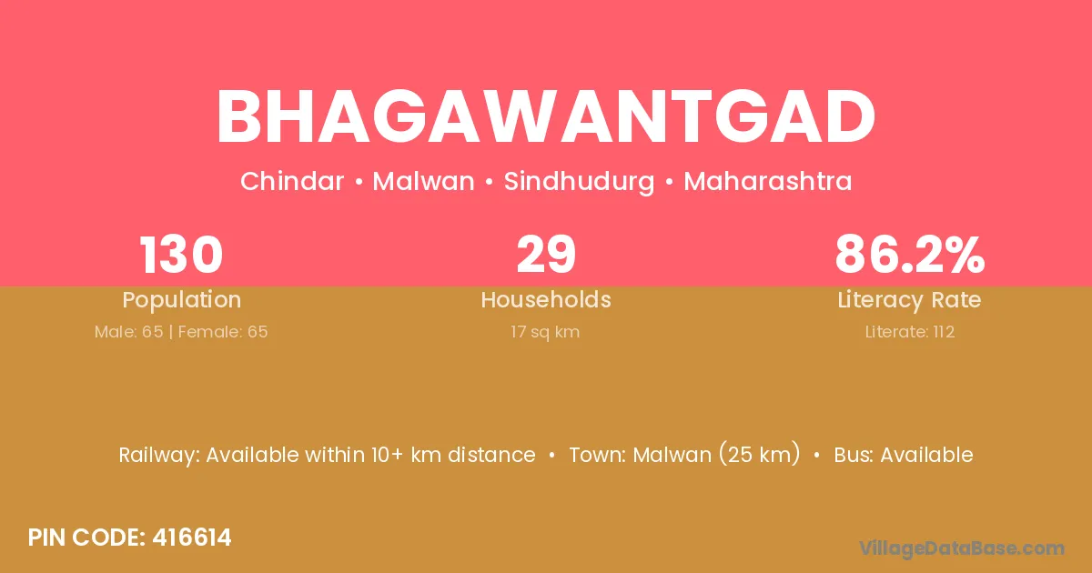 Malwan (25 km) is the nearest town to Bhagawantgad village for major economic activities and is located approximately 25 km away.