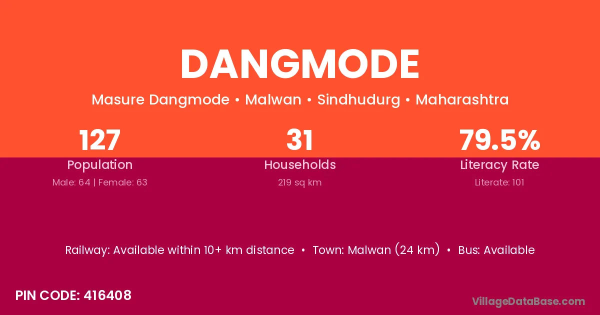 Malwan (24 km) is the nearest town to Dangmode village for major economic activities and is located approximately 24 km away.