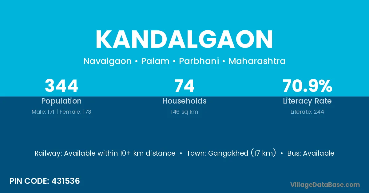 Malwan (10 km) is the nearest town to Kandalgaon village for major economic activities and is located approximately 10 km away.