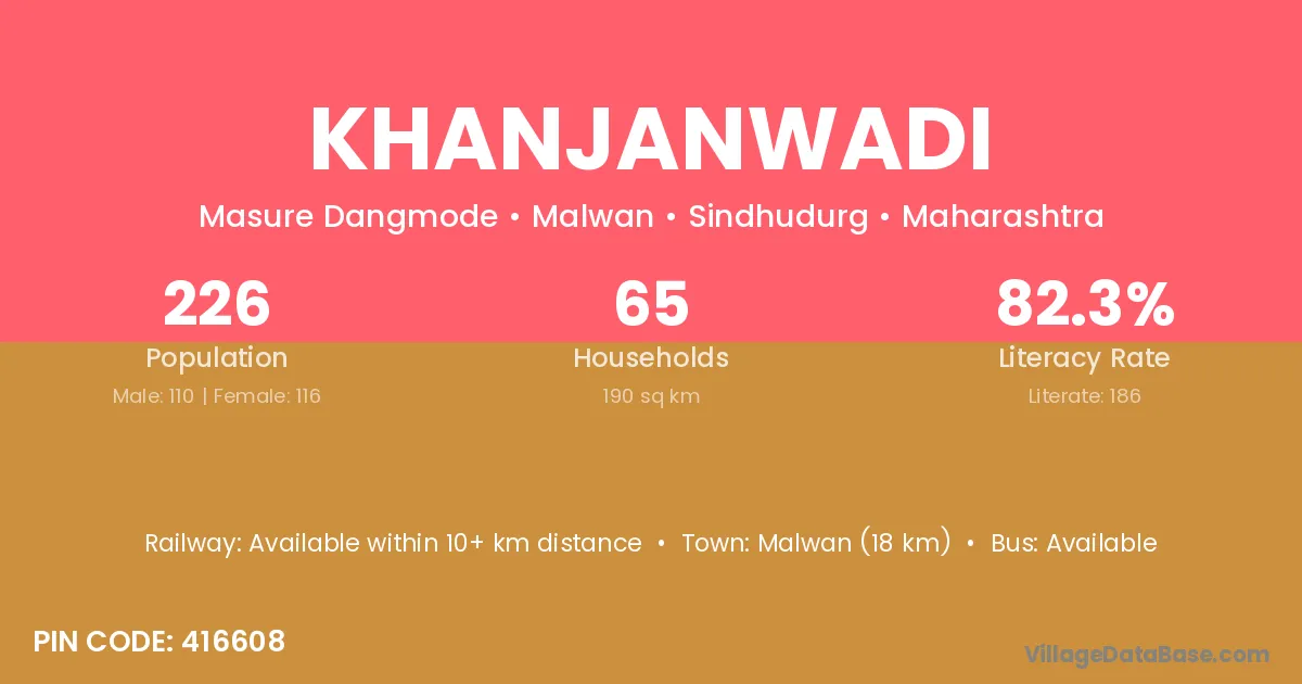 Malwan (18 km) is the nearest town to Khanjanwadi village for major economic activities and is located approximately 18 km away.