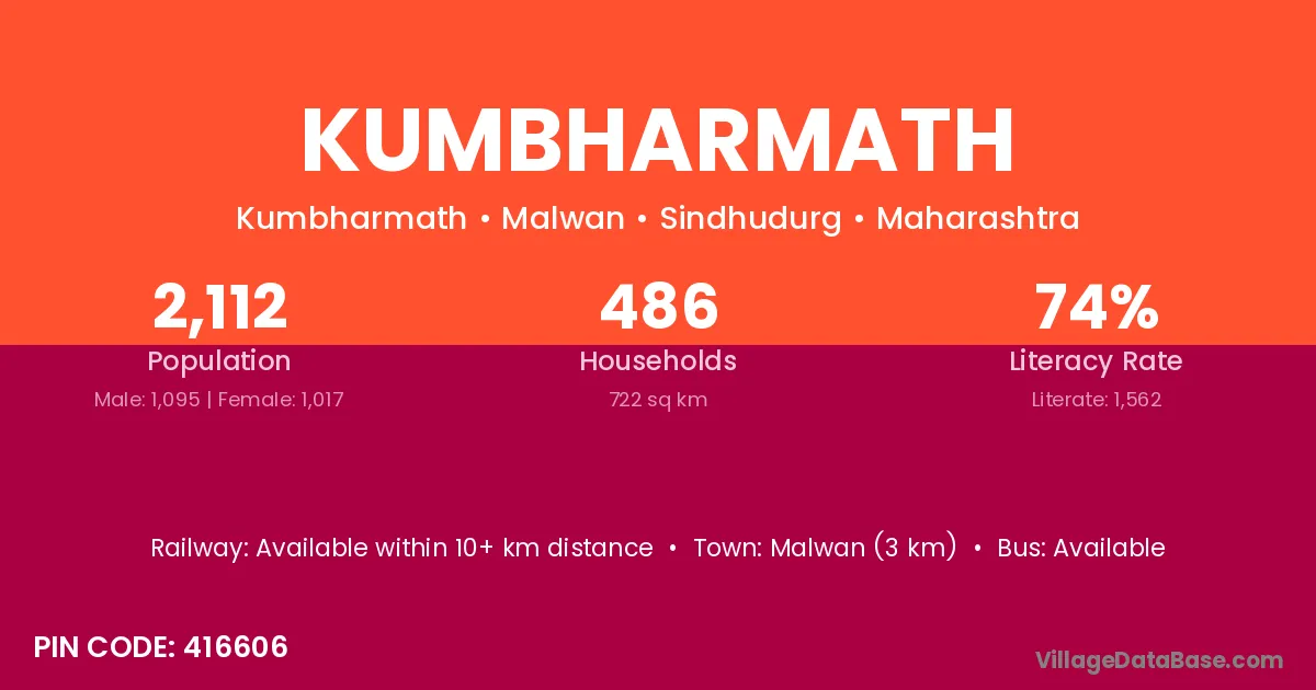 Malwan (3 km) is the nearest town to Kumbharmath village for major economic activities and is located approximately 3 km away.