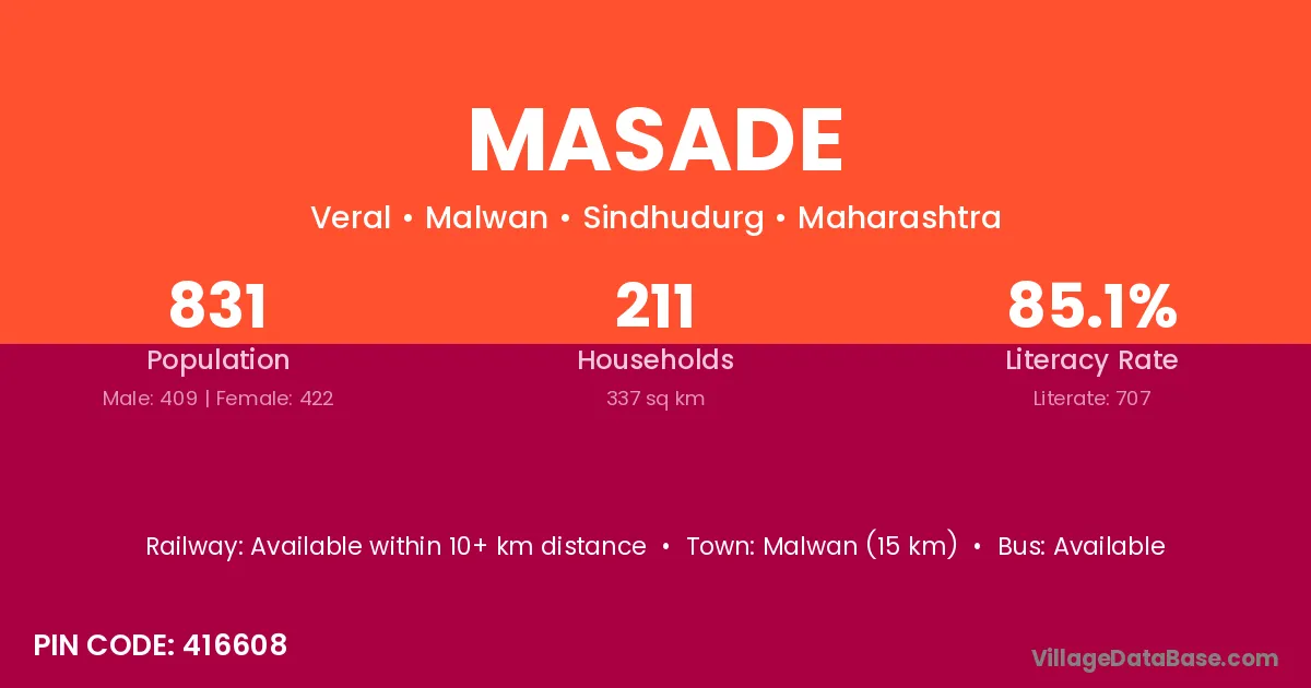 Malwan (15 km) is the nearest town to Masade village for major economic activities and is located approximately 15 km away.
