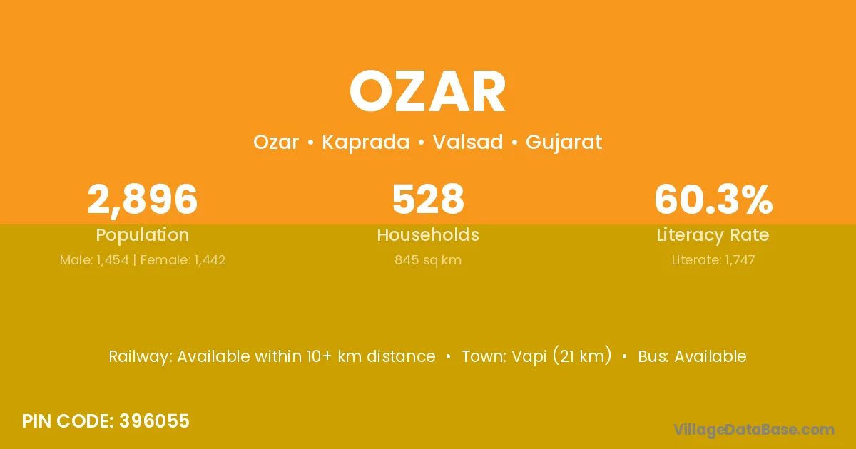 Malwan (5 km) is the nearest town to Ozar village for major economic activities and is located approximately 5 km away.