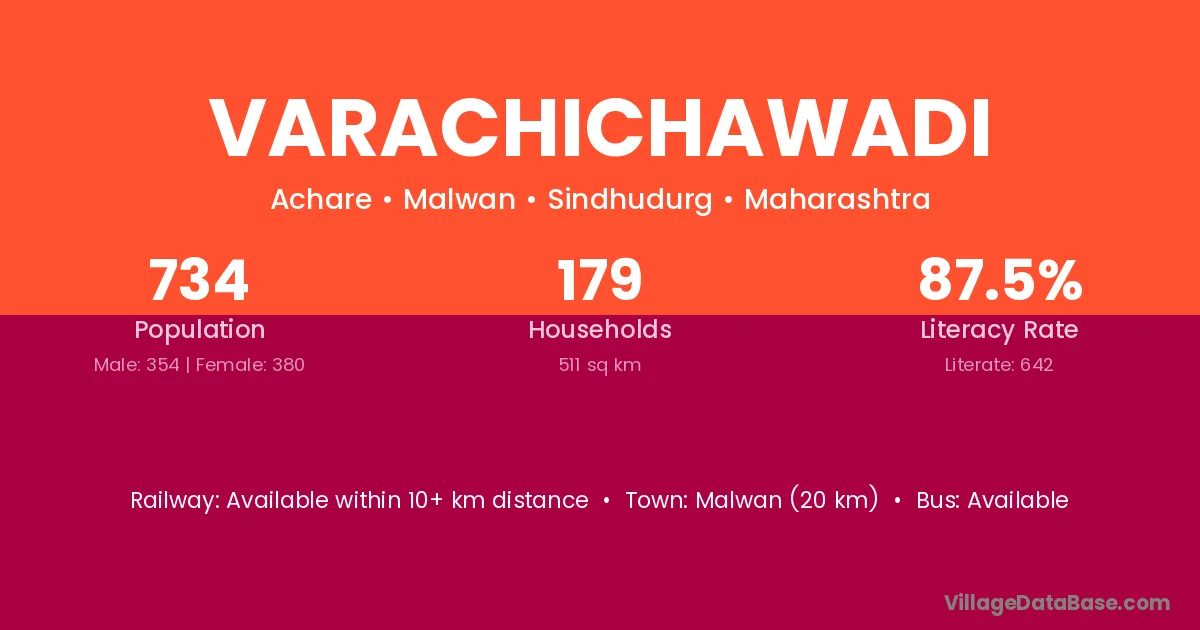 Malwan (20 km) is the nearest town to Varachichawadi village for major economic activities and is located approximately 20 km away.