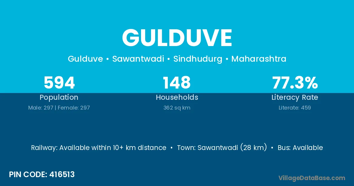 Sawantwadi (28 km) is the nearest town to Gulduve village for major economic activities and is located approximately 28 km away.
