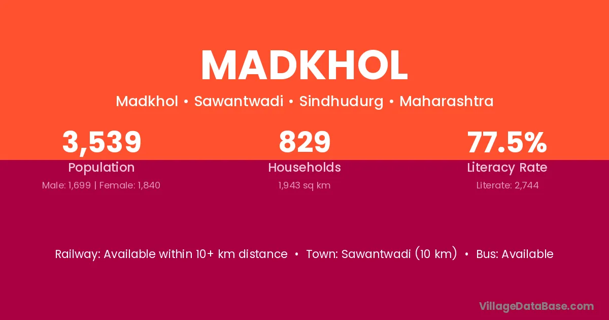 Sawantwadi (10 km) is the nearest town to Madkhol village for major economic activities and is located approximately 10 km away.