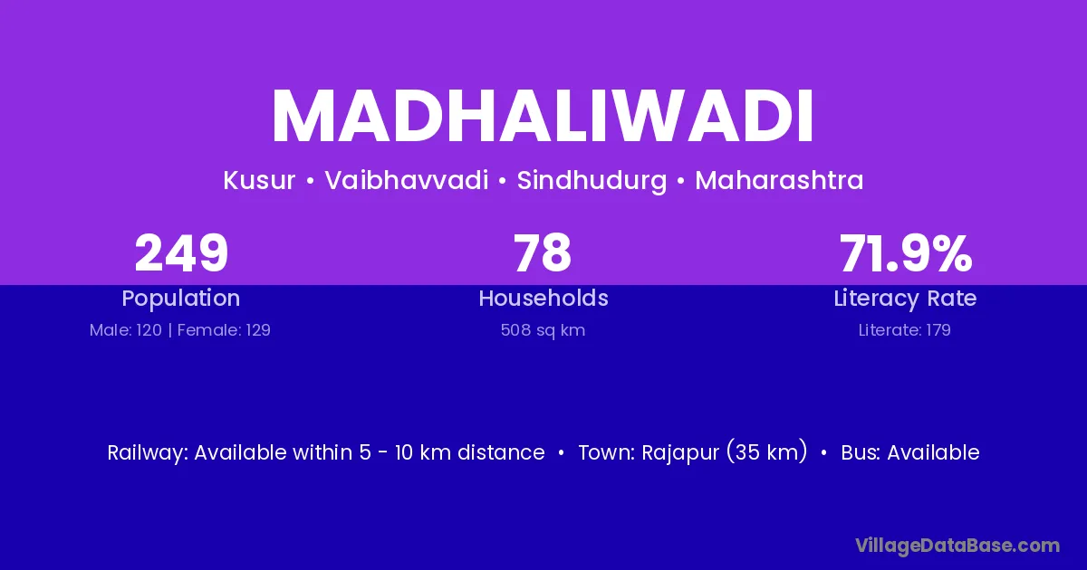 Rajapur (35 km) is the nearest town to Madhaliwadi village for major economic activities and is located approximately 35 km away.