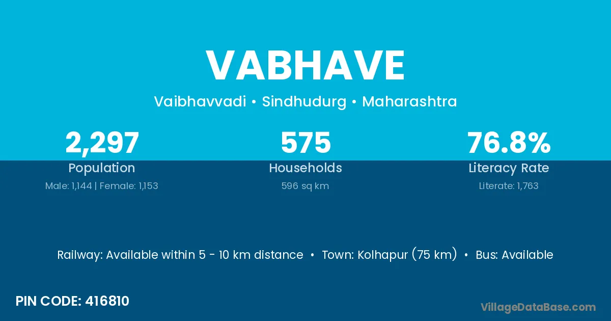 Kolhapur (75 km) is the nearest town to Vabhave village for major economic activities and is located approximately 75 km away.