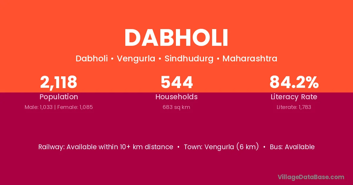 Vengurla (6 km) is the nearest town to Dabholi village for major economic activities and is located approximately 6 km away.
