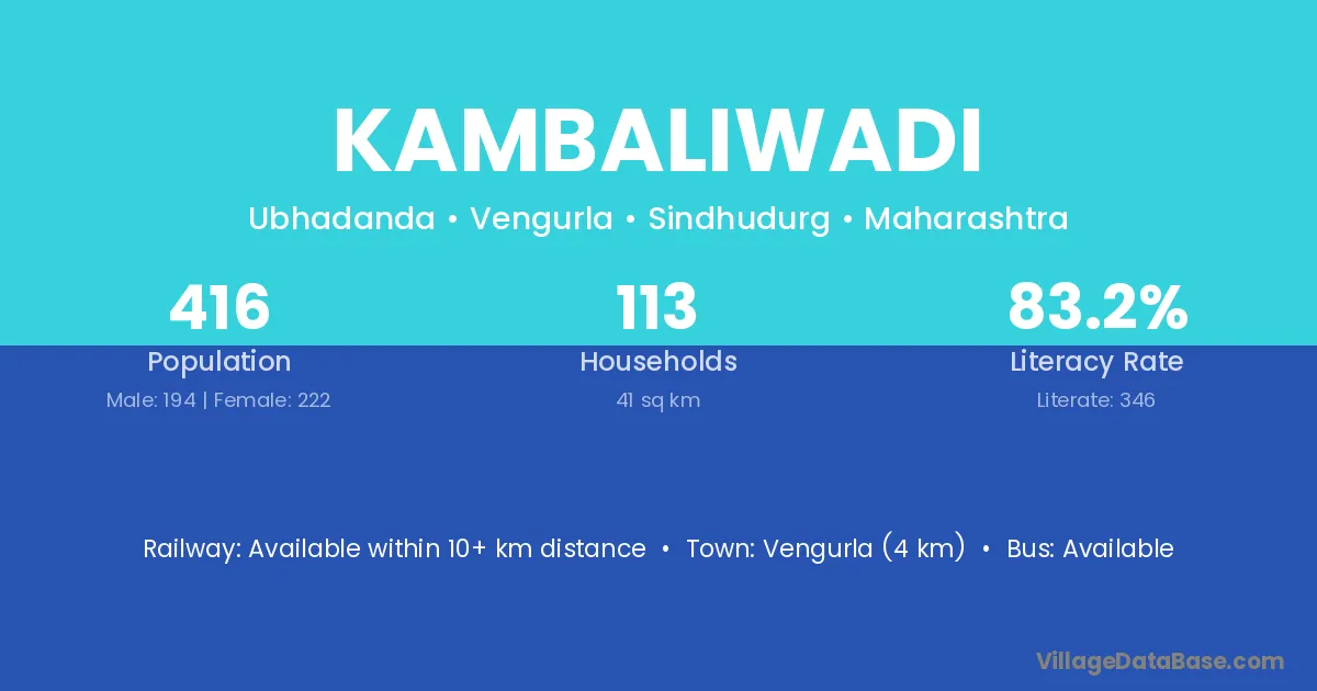 Vengurla (4 km) is the nearest town to Kambaliwadi village for major economic activities and is located approximately 4 km away.