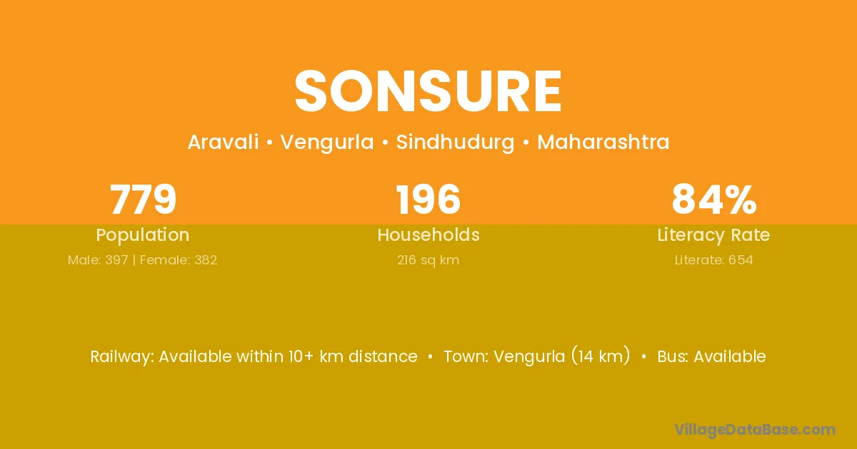 Vengurla (14 km) is the nearest town to Sonsure village for major economic activities and is located approximately 14 km away.