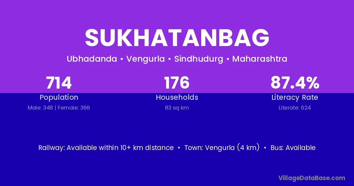 Vengurla (4 km) is the nearest town to Sukhatanbag village for major economic activities and is located approximately 4 km away.