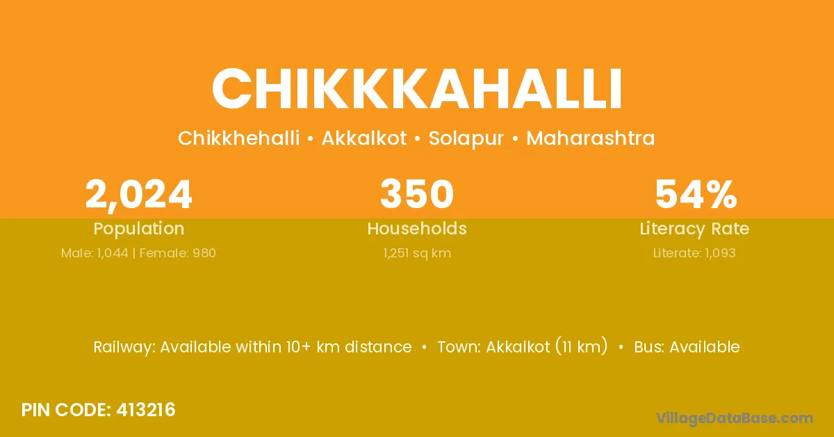 Akkalkot (11 km) is the nearest town to Chikkkahalli village for major economic activities and is located approximately 11 km away.