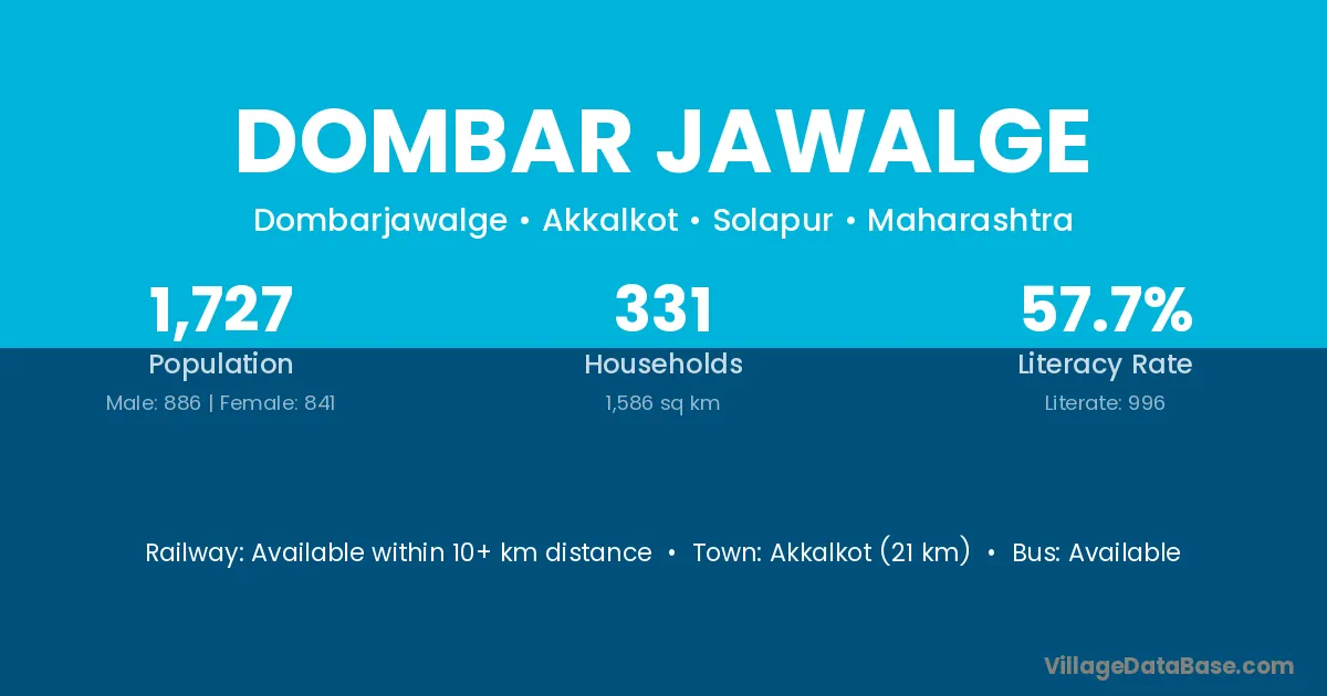 Akkalkot (21 km) is the nearest town to Dombar Jawalge village for major economic activities and is located approximately 21 km away.