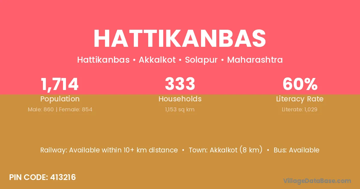 Akkalkot (8 km) is the nearest town to Hattikanbas village for major economic activities and is located approximately 8 km away.