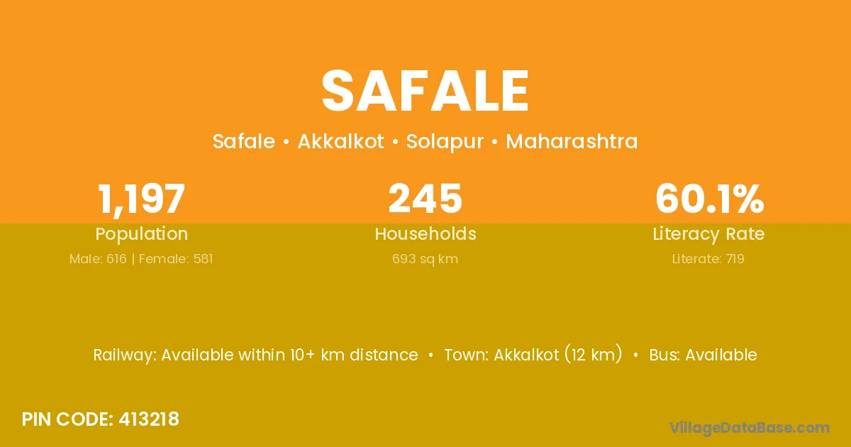 Akkalkot (12 km) is the nearest town to Safale village for major economic activities and is located approximately 12 km away.