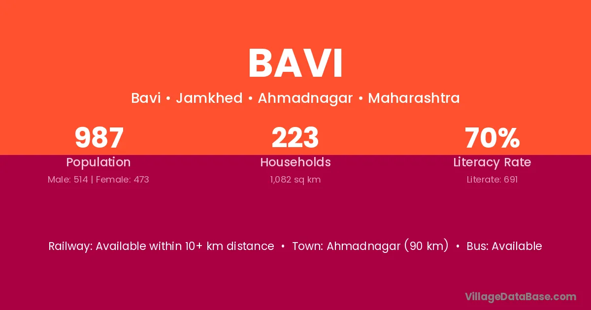 Barshi (12 km) is the nearest town to Bavi village for major economic activities and is located approximately 12 km away.