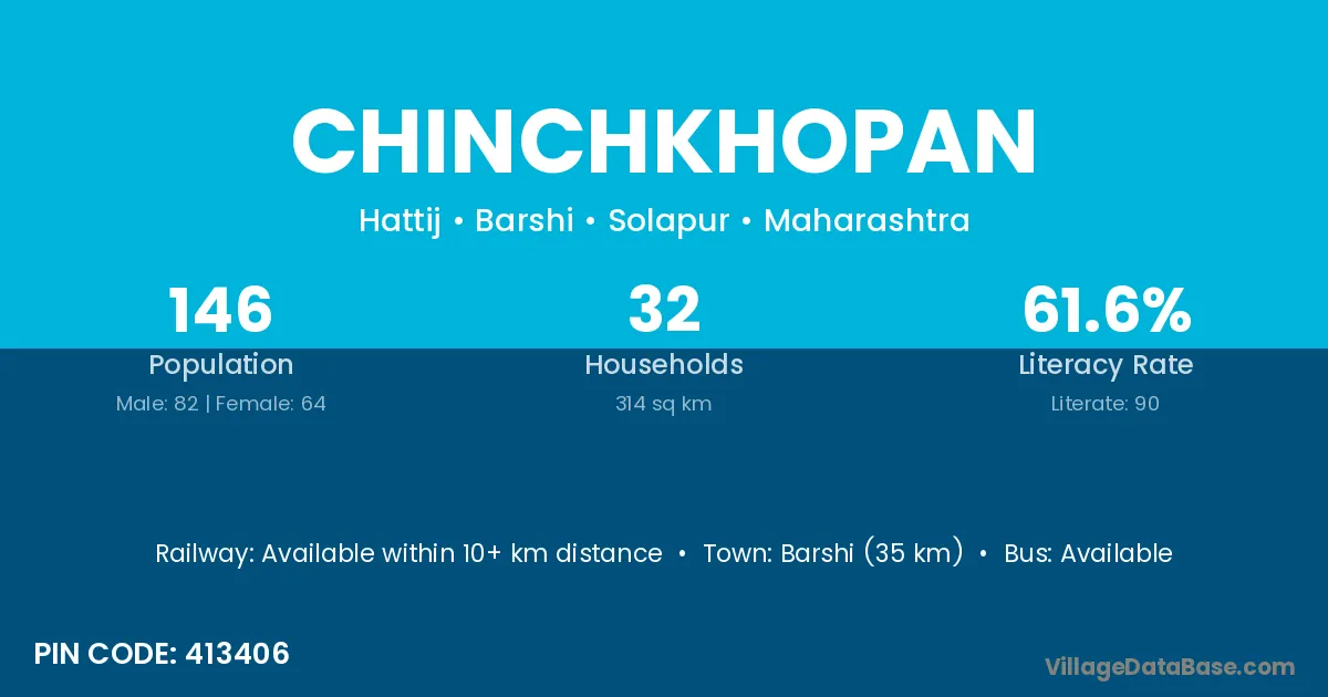 Barshi (35 km) is the nearest town to Chinchkhopan village for major economic activities and is located approximately 35 km away.