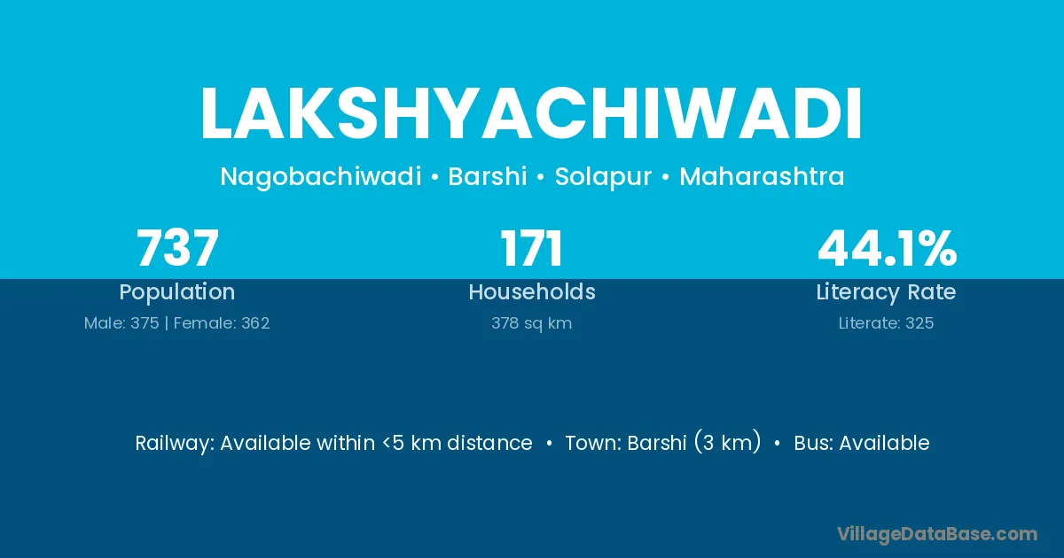 Barshi (3 km) is the nearest town to Lakshyachiwadi village for major economic activities and is located approximately 3 km away.