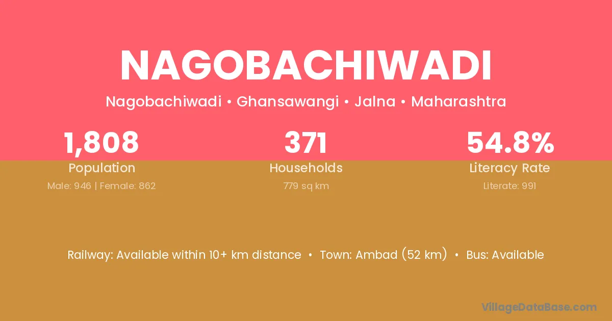 Barshi (3 km) is the nearest town to Nagobachiwadi village for major economic activities and is located approximately 3 km away.