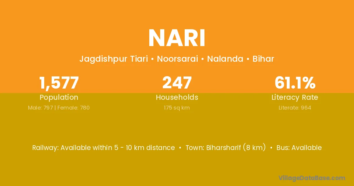 Nari village has a total population of 3,541 people, of which 1,843 are males and 1,698 are females.