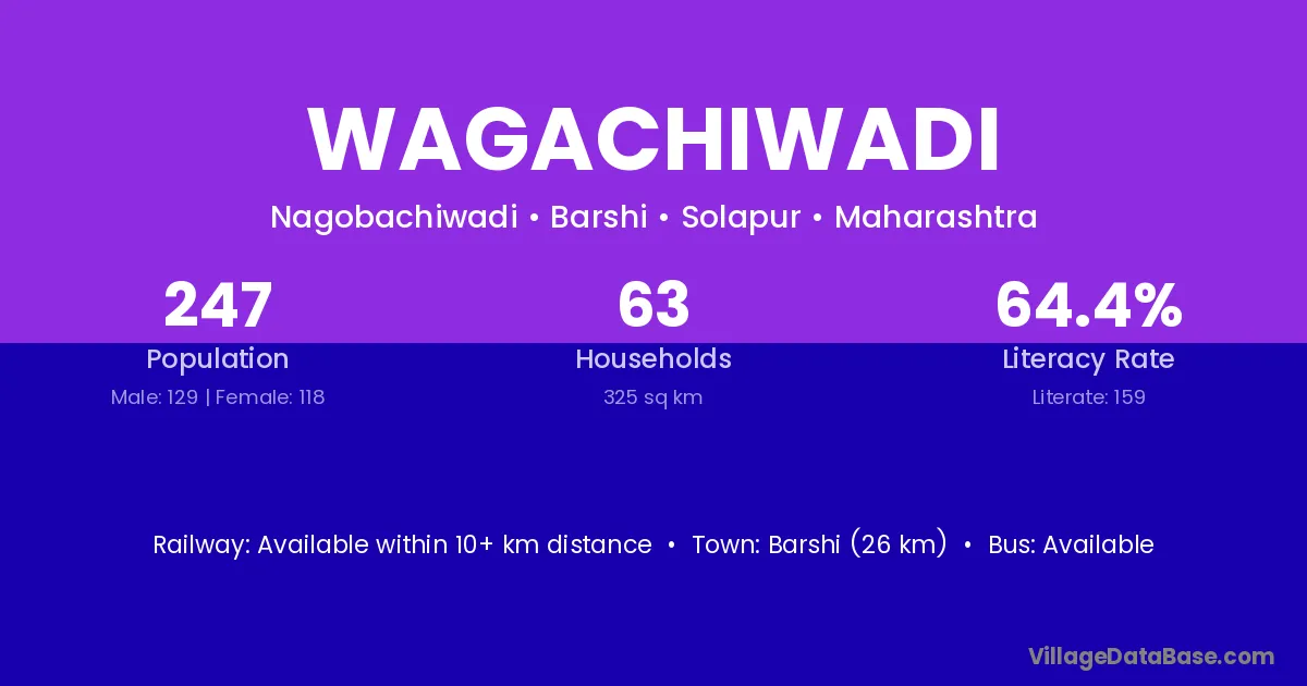 Barshi (26 km) is the nearest town to Wagachiwadi village for major economic activities and is located approximately 26 km away.