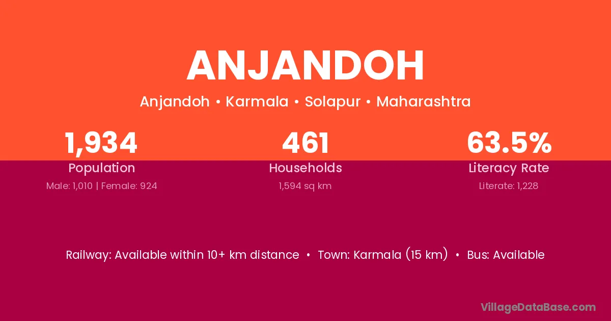 Karmala (15 km) is the nearest town to Anjandoh village for major economic activities and is located approximately 15 km away.