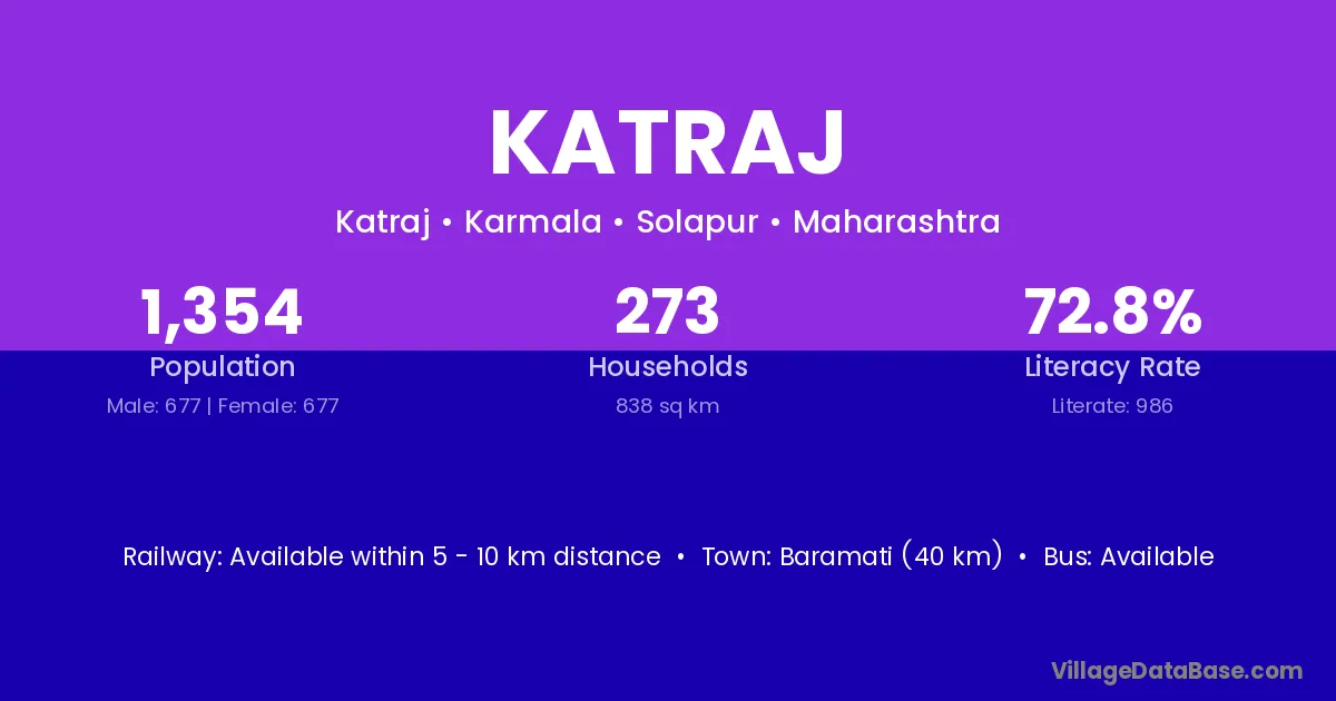 Baramati (40 km) is the nearest town to Katraj village for major economic activities and is located approximately 40 km away.