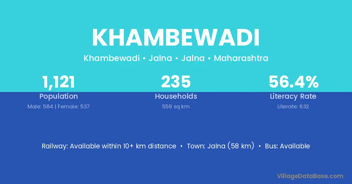 The literacy rate of Khambewadi village is 58.78%. Male literacy stands at 67.97% and female literacy at 48.79%.