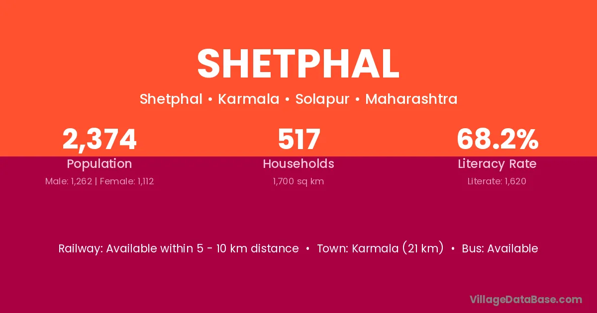 Karmala (21 km) is the nearest town to Shetphal village for major economic activities and is located approximately 21 km away.
