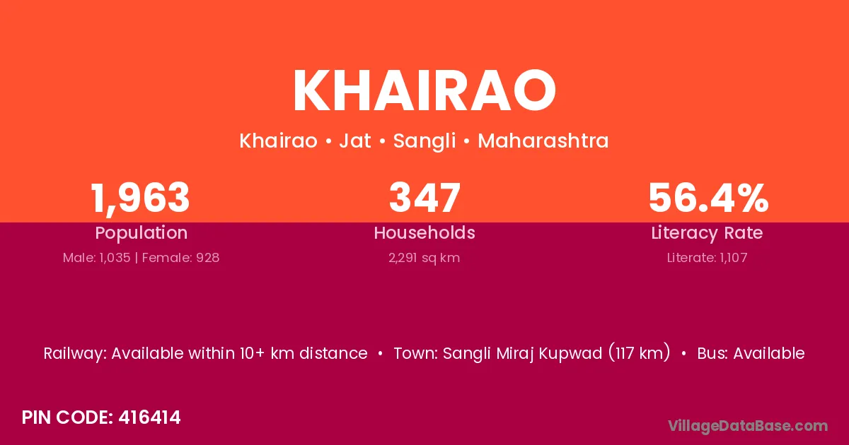 According to Census 2011 information, the village code of Khairao village is 413410.