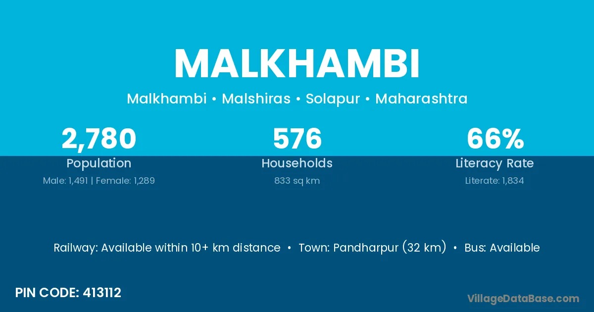 Pandharpur (32 km) is the nearest town to Malkhambi village for major economic activities and is located approximately 32 km away.